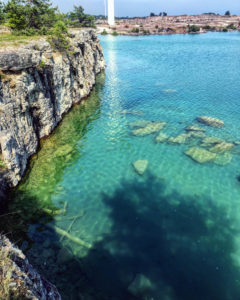 Observera att här krävs simkunnighet, det blir djupt direkt både i havet och i kalkbrottet. Vägen till Smöjen är en grusväg som kan vara i rätt dåligt skick men absolut körbar med en vanlig bil om man tar det lite lugnt.